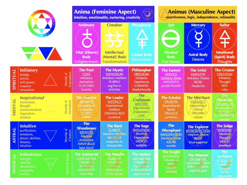 24 Archetypes Elemental Faculties & Energetic Bodies Anima (Feminine Aspect) intuition, emotionality, nurturing, creativity Animus (Masculine Aspect) assertiveness, logic, independence, rationality