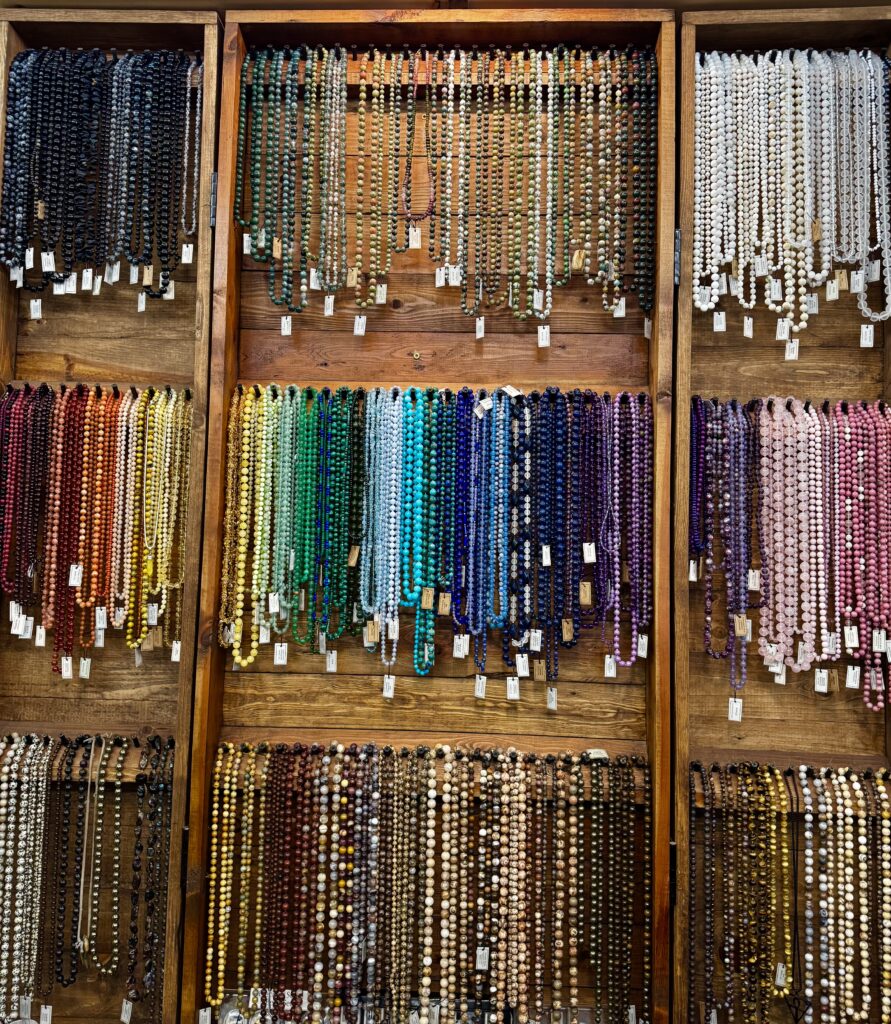 Within Applegarth’s Gemstone Apothecary, an extensive collection of high-quality gemstone necklaces is curated for their color resonance, mineral purity, and symbolic correspondence. These necklaces are not for sale; rather, they are part of an evolving collection used in Self-Evaluation Gemstone Therapy Sessions designed to awaken awareness through direct sensory experience.